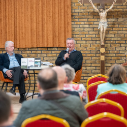 A beszélgetés során szó esett a trilógia megszületéséről és az alkotói folyamatról is. A szerzőt felesége inspirálta, miközben saját családja történeteit is beleszőtte a műbe, alapos történeti kutatásokkal kiegészítve. A központi motívum egy elszakított ikerpár sorsa, amely tulajdonképpen az anyaországi és a határon túli magyarság szimbóluma is.