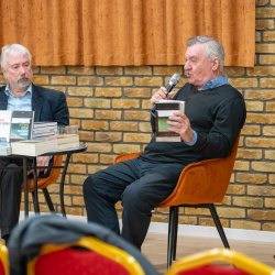 Domonkos László megköszönte a meghívást, kiemelve, mennyire különleges számára, amikor az elszakított területeken jár, és ott találkozhat az olvasókkal – ez mindig többletet jelent számára. Hozzátette: bár sem ő, sem Jezsó Ákos nem határon túl született, szüleik onnan kerültek Magyarországra.