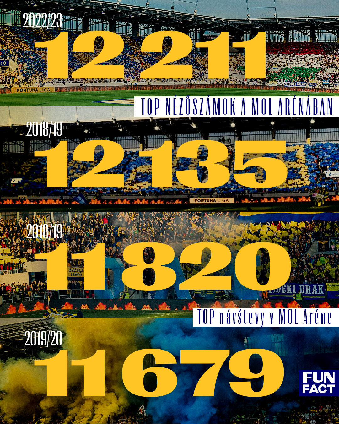 Említésre méltó az a tény is, a DAC a MOL Arénában abszolvált eddigi 184 meccsének (bajnokság, kupák, felkészülés) a látogatottsági listája első négy helyén pont a Slovan elleni találkozók állnak. Mind a négy átlépte a 11 600-as határt, a legtöbben 2023 májusában voltunk, amikor is a bajnoki cím szempontjából sorsdöntő csatát 12 211 néző látta élőben.