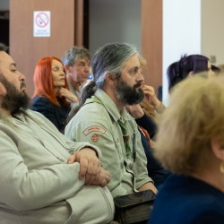 Böde Péter vándormeseíró saját verssel köszöntötte a FEMIT-et és a konferenciára érkező nagyszámú érdeklődőt.