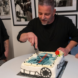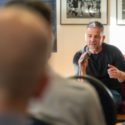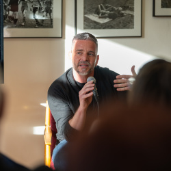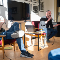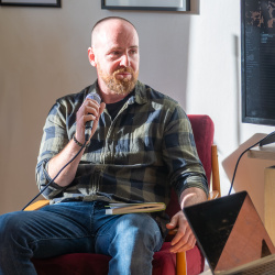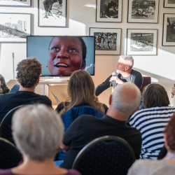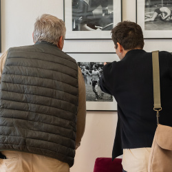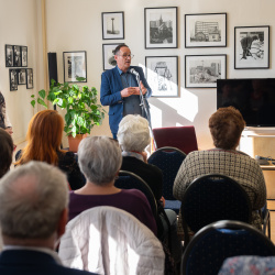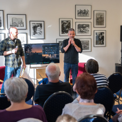 A kiállítás megtekintése és rövid eszmecsere után Hajdú D. András, a National Geographic fotósa tartott előadást szakmai pályájáról. Ugróczky István kérdéseire válaszolva nem technikai részletekről, hanem a képek mögötti történetekről mesélt. Saját meghatározása szerint vizuális történetmesélő, akinek munkájában az emberi sorsok állnak a középpontban.