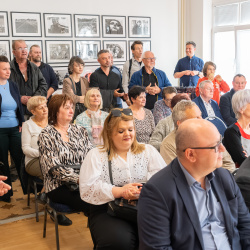 A tárlatnyitó a közösségi tér megújulását is jelképezte: az ünnepélyes szalagátvágáson Varga Viktor, Berényi József, valamint Nagyszombat megye képviselői – Polák László, Ekecs és Bacsó László, Nyárasd polgármestere – adták át a felújított tereket.