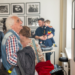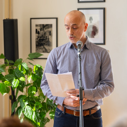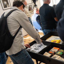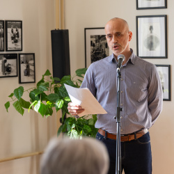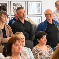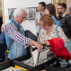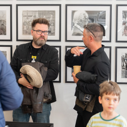 Az ünnepi percek után Pőthe Péter, a kiállítás egyik kurátora rámutatott: analóg technikával dolgozó fotósként különösen közel érzi magához a kiállított alkotásokat.