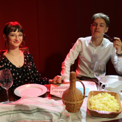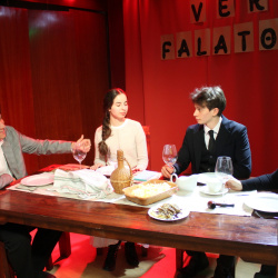 A produkció hitelességét az is fokozta, hogy a vendéglátóipari tagozat diákjai nemcsak elkészítették a jelenetekhez kapcsolódó fogásokat, hanem – a darabba írt pincérszerepüknek megfelelően – ők maguk szolgálták fel azokat, miközben az éttermi hangulatot zongorajáték és különleges fénytechnika tette teljessé.