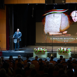 „Mindannyian a magyar kultúra letéteményesei vagyunk, hiszen a magyar kultúra és a magyar nemzet nem ismer határokat: jelen van a Kárpát-medencében és a diaszpórában élő nemzetrészekben is. Kultúránk behálózza a világot, és gazdagít minden olyan országot és nemzetet, amely befogad bennünket – sőt, azokat is, amelyek felettünk kimondják a kollektív bűnösséget” – fogalmazott az államtitkár.