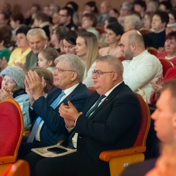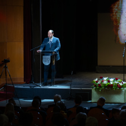 Kiemelten üdvözölte az ünnepi est díszvendégeit: Nacsa Lőrincet, Magyarország nemzetpolitikáért felelős államtitkárát, Nagy Márton Gábort, Magyarország Pozsonyi Nagykövetségének helyettes konzulját, Hájos Zoltánt, Dunaszerdahely polgármesterét, Nagy Darinát, a városi hivatal elöljáróját, valamint Böjte Sándor Zsoltot, Zalaegerszeg Megyei Jogú Város önkormányzati képviselőjét.