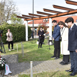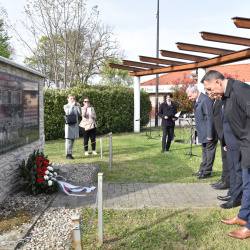 A megemlékezés végén koszorút helyezett el a város nevében Hájos Zoltán polgármester, Berényi József megyei alelnök, Puha György és Karaffa Attila alpolgármesterek, valamint a Pázmaneum Polgári Társulás képviselői. A megjelent résztvevők pedig egy-egy szál fehér virággal tisztelegtek a kitelepített magyarok emléke előtt – sokan saját családtagjaikra, szüleikre, nagyszüleikre, egykori szomszédaikra emlékezve.