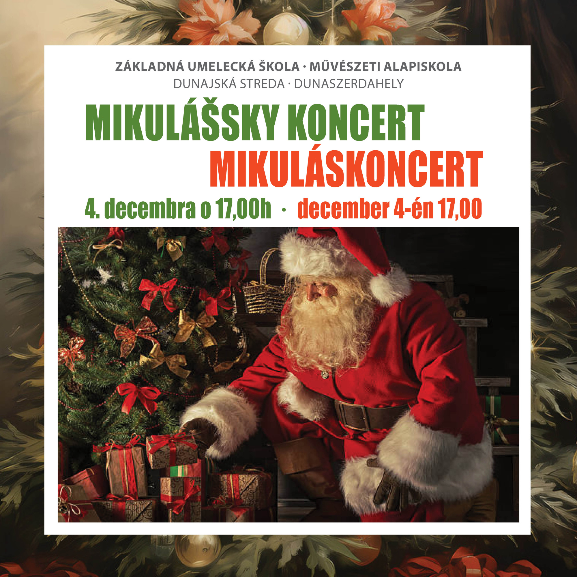 A szervezők szeretettel várnak minden érdeklődőt december 4-én, 17 órától a Dunaszerdahelyi Művészeti Alapiskola Mikuláskoncertjére – hogy együtt köszöntsük a tél legkedvesebb vendégét, a Mikulást.