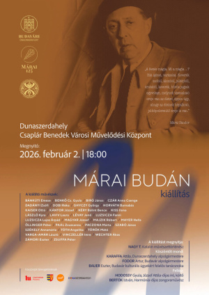 A szervezők tisztelettel hívják az érdeklődőket a MÁRAI BUDÁN című kiállítás megnyitójára, melyre 2026. február 2-án, hétfőn 18.00 órakor kerül sor a Csaplár Benedek Városi Művelődési Központban.