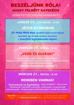 Albán József atya Beszéljünk róla! avagy felnőtt katekézis sorozatának újabb állomásán Jézus nyomában járhatunk egy virtuális utazáson a Szentföldön, Hutár Márk atyával, szentföldi idegenvezetővel