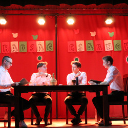 Az előadás a Mennyei Szabadság Csarnokában vette kezdetét, ahol a márciusi ifjak immár „égi szemmel“, mégis a régi baráti közvetlenséggel vitatták meg a forradalom előestéjét: a Pilvax kávéház izgalmas pillanatait, a sajtószabadság kivívásának körülményeit, Táncsics kiszabadításának történetét, valamint a Nemzeti Színház ünnepi előadásának különleges fordulatait.