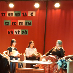 Míg az ifjak az égi csarnokban a politikai eseményeket és a nyomda körüli izgalmakat beszélték át, addig a képzeletbeli Szabadság, Szerelem kávézóban a márciusi hölgyeké volt a főszerep. Ebben a meghitt környezetben a forradalom érzelmi háttere és a nők áldozatvállalása került a középpontba. Szendrey Júlia a nemzetiszín kokárda születéséről és annak szimbolikus jelentéséről mesélt – kiemelve, hogy a fekete selyemruhán viselt szalag számára nem dísz, hanem hitvallás volt –, míg Laborfalvy Róza a Nemzeti Színház történelmi estéjét idézte fel. A beszélgetések során különös figyelmet kapott Táncsics Mihály felesége, Seidl Teréz is, aki a „padmály” rejtekében való bujkálásról és a nehéz időkben tanúsított kitartásáról vallott.