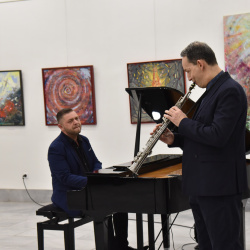 Az est zenei ívét Liszt- és Harmónia-díjas művészek alakították: Bertók István zongoraművész és Kotiers András szaxofonművész érzékeny előadásában hangzottak el ismert dalok – Fényes Szabolcs és Presser–Demjén szerzeményei –, amelyek finom ellenpontot adtak a képek szín- és formavilágának.