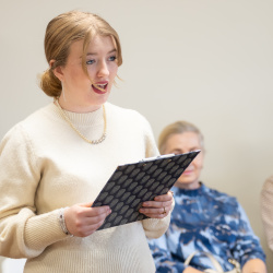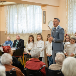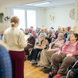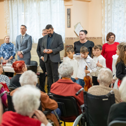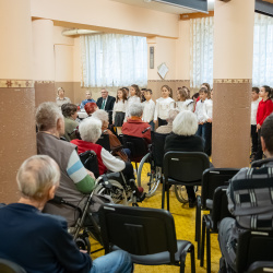 A szeretet nem harsány, nem látványos; ott rejlik a csendes jelenlétben, egy mosolyban, egy együtt töltött pillanatban – e gondolat jegyében köszöntötték a Vámbéry Ármin Alapiskola harmadikos kis diákjai a nyugati lakótelepi panzió lakóit kedves, zenés-verses összeállításukkal.