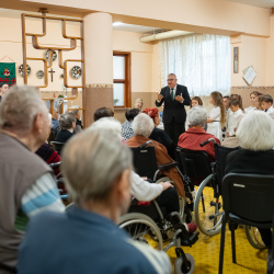 A keleti lakótelepi panzió lakóit a Közös Igazgatású Szakközépiskola, Szabó Gyula 21 tanulói örvendeztették meg zenés-verses műsorukkal. Klőr Levente, az iskola tanára azt is elmondta, hogy a virágkötő szakmát tanuló diákok készítették és ajándékozták a panziónak az ünnepi adventi koszorút.