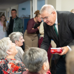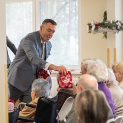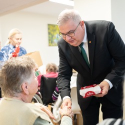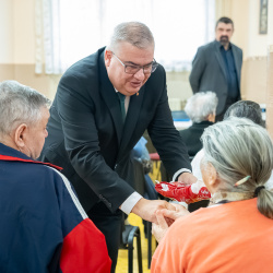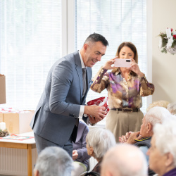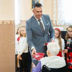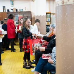 A nyugati lakótelepi panzióban a Vámbéry Ármin Alapiskola diákjai műsoruk után kedves gesztussal lepték meg a lakókat. Domonkos Tímea, az iskola igazgatóhelyettese elmondta: tavaly indították el azt a szeretetteljes kezdeményezést, amelyben azt szeretnék megtanítani a diákoknak, hogy abból a szeretetből, amelyet ők kapnak, adjanak tovább azoknak is, akiket nem ismernek. A kisdiákok így dobozba zárt szeretetet – személyre szabott ajándékot – adtak át a panzió valamennyi lakójának.